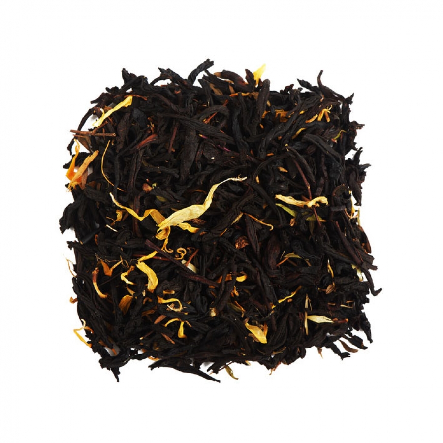 Чёрный чай с яркими, жёлтыми лепестками календулы и тонкими веточками чабреца очень красив. Это, пожалуй, лучший чай для семейного чаепития. Тонкий аромат трав дополняет традиционный аромат сухой чайной заварки.