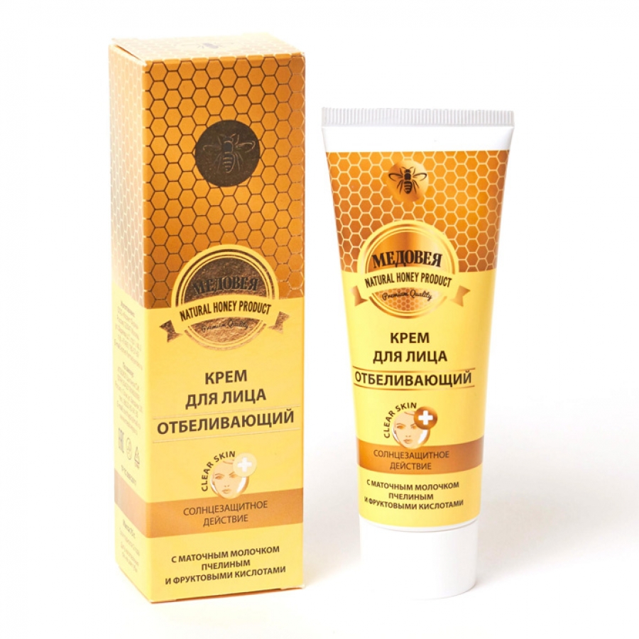 Отбеливающий крем для лица «Медовея» отбеливает кожу, веснушки, хлоазмы, пигментные пятна. Крем содержит активный компонент для депигментации кожи, который в совокупности замедляет биосинтез меланина, обеспечивая значительное осветление пигментных пятен, предупреждая их новое появление.
